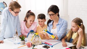 Coordinating different activities in stations and rotating groups from one station to the next is a common practice at camp.